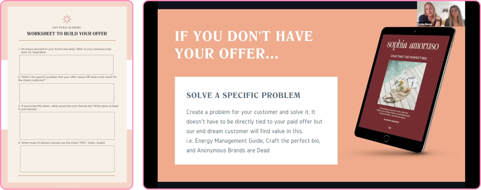 You’ll get instant access to the virtual classroom with in-depth workshops, a fillable workbook, and bonus resources.